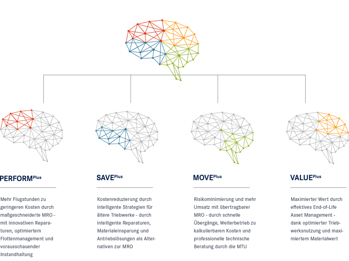 Als Experte für die Instandhaltung ziviler Triebwerke bieten wir von der MTU Maintenance mit MTUPlus Intelligent Solutions Lösungen, die speziell auf die Bedürfnisse unserer Kunden zugeschnitten sind. Ob es darum geht, im laufenden Flugbetrieb mehr Flugstunden zu generieren oder für Triebwerke am Ende des Lebenszyklus intelligente Strategien zu entwickeln – für jeden Kunden finden wir die perfekte Lösung.