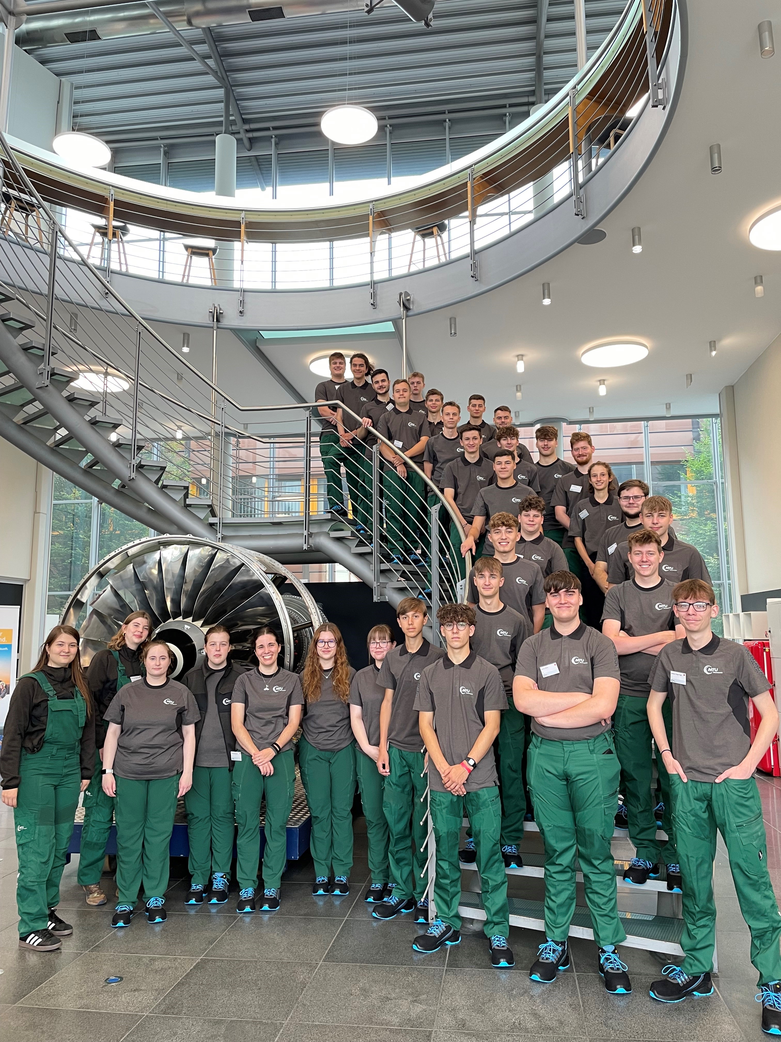In Ludwigsfelde bei der MTU Maintenance Berlin-Brandenburg starten 24 neue Azubis. Hier gibt es die Berufssparten Fluggerätmechaniker:in und Industriemechaniker:in. Zwei Studierende nehmen ihr duales Bachelor-Maschinenbau-Studium auf