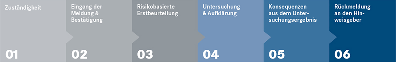 Wir tolerieren kein regel- oder rechtswidriges Verhalten. Auf Hinweise reagieren wir unverzüglich und untersuchen diese gründlich. Festgestellte Verstöße ahnden wir konsequent. Sollte sich herausstellen, dass bloß ein Missverständnis vorlag, können diese Hinweise dennoch hilfreich sein, um unsere Arbeitsprozesse und