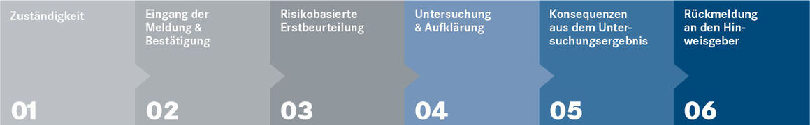 Wir tolerieren kein regel- oder rechtswidriges Verhalten. Auf Hinweise reagieren wir unverzüglich und untersuchen diese gründlich. Festgestellte Verstöße ahnden wir konsequent. Sollte sich herausstellen, dass bloß ein Missverständnis vorlag, können diese Hinweise dennoch hilfreich sein, um unsere Arbeitsprozesse und -beziehungen zu verbessern.