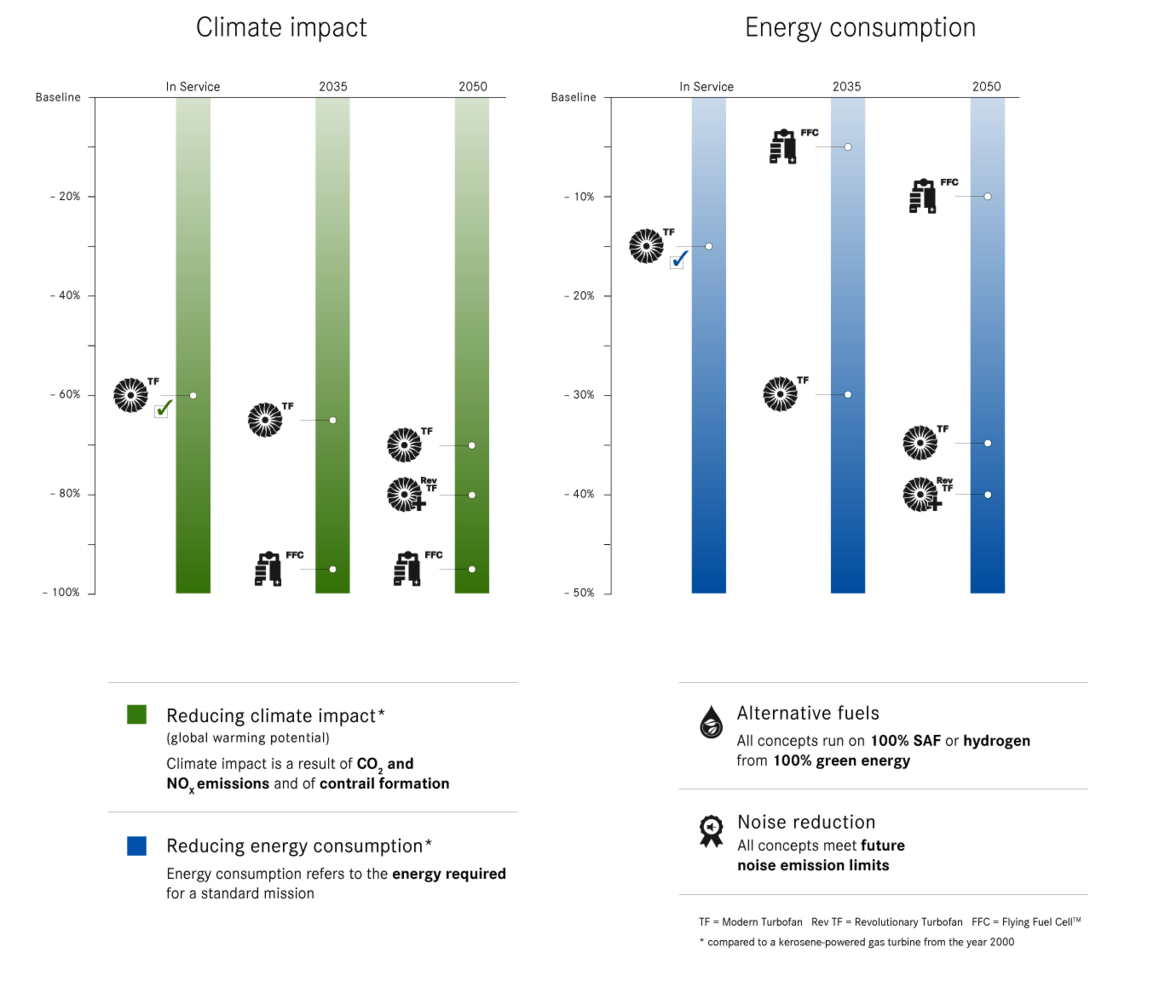 At MTU, we’re pursuing the clear course: cleaner, quieter, more economical. With our Claire (Clean Air Engine) technology agenda, we lay out innovative concepts for sustainable commercial aircraft engines. To do so, we take a two-pronged approach: one is evolutionary development of the gas turbine based on the geared turbofan (GTF), and the other is the development of completely new, revolutionary propulsion technologies, such as the Revolutionary Turbofan and the Flying Fuel CellTM (FFC). Sustainable aviation fuels and hydrogen play a key role, and so we’re already working on an innovative liquid-hydrogen fuel system for the FFC, while also building two state-of-the-art test stands for it on our premises in Munich.