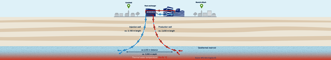No distance is too far for MTU to drive forward climate action in production: we drilled down over 2,100 meters at our Munich headquarters to be able to use geothermal energy as a sustainable energy source. We want to reduce our carbon footprint by 63 percent 2035 relative to 2024. Our climate strategy shows how we mean to achieve this—by reducing consumption, expanding our own renewable power generation, and making increased use of green energy.